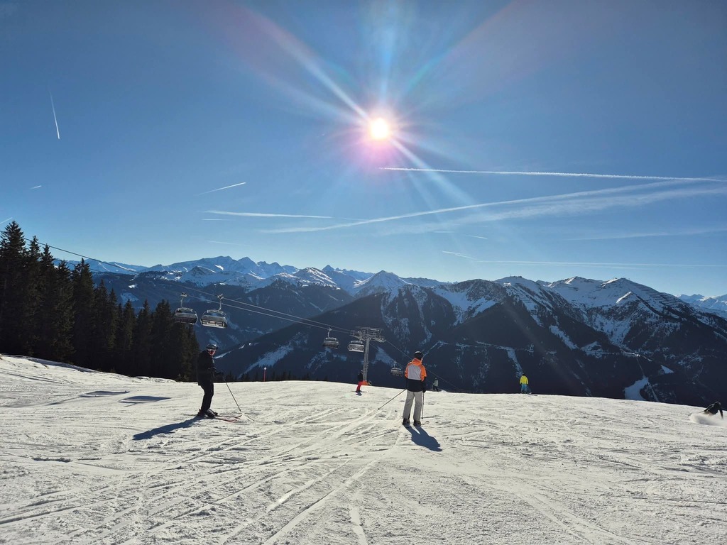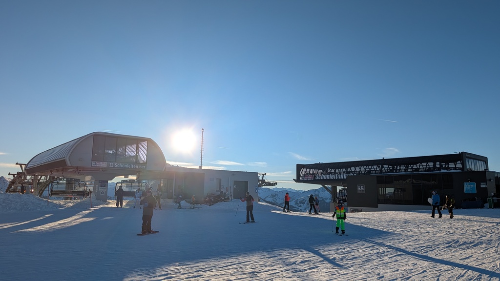 Die Schneelage neben den Pisten war vor allem auf der Südseite überschaubar bis nicht vorhanden, und es waren auch lange nicht alle Pisten offen, aber die geöffneten Pisten waren in gutem bis sehr gutem Zustand, und man konnte das Skigebiet in beiden Richtungen umrunden.