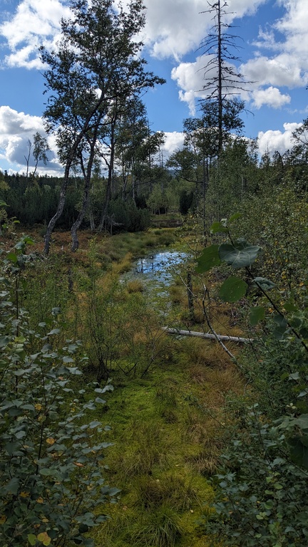 Über die Teufelsbachklause erreichten wir das Finsterauer Filz, ein renaturiertes Hochmoor, das auf Holzstegen bequem und sicher durchquert werden kann.